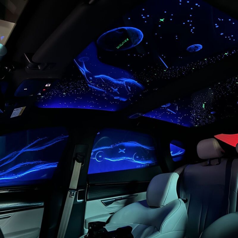 Die Folie besteht aus präzisionsoptischem Lichtleiter-PC-Material in Kombination mit hochklaren PET-Schichten, die es dem Licht ermöglichen, gleichmäßig über die Oberfläche zu wandern. Diese Technologie erzeugt eine zarte Sternenhimmel-Atmosphäre, die das Innenraumambiente verbessert, ohne den Fahrer abzulenken.